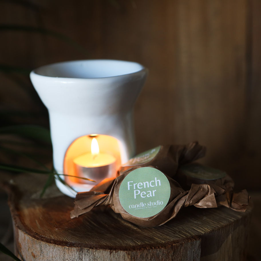 Elegant and indulgent, our French Pear wax sweet blends gentle citrus top notes with a heart of caramelized pear and jasmine. As it melts, soft vanilla cream and a touch of honey linger, filling your space with a warm and welcoming aroma.